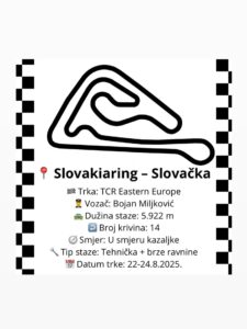 Upravo ovdje, od 22. do 24. avgusta, naš Bojan Miljković ulazi u novu bitku unutar TCR Eastern Europe šampionata.