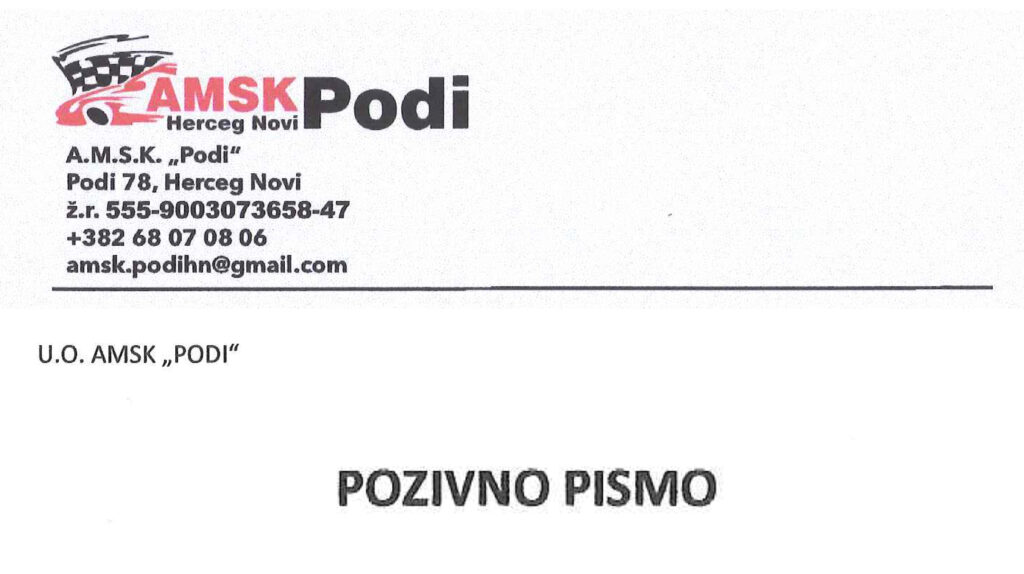 Poštovani, u prilogu je pozivno pismo AMSK “PODI” za brdsku trku “PODI 2024 Meridianbet”